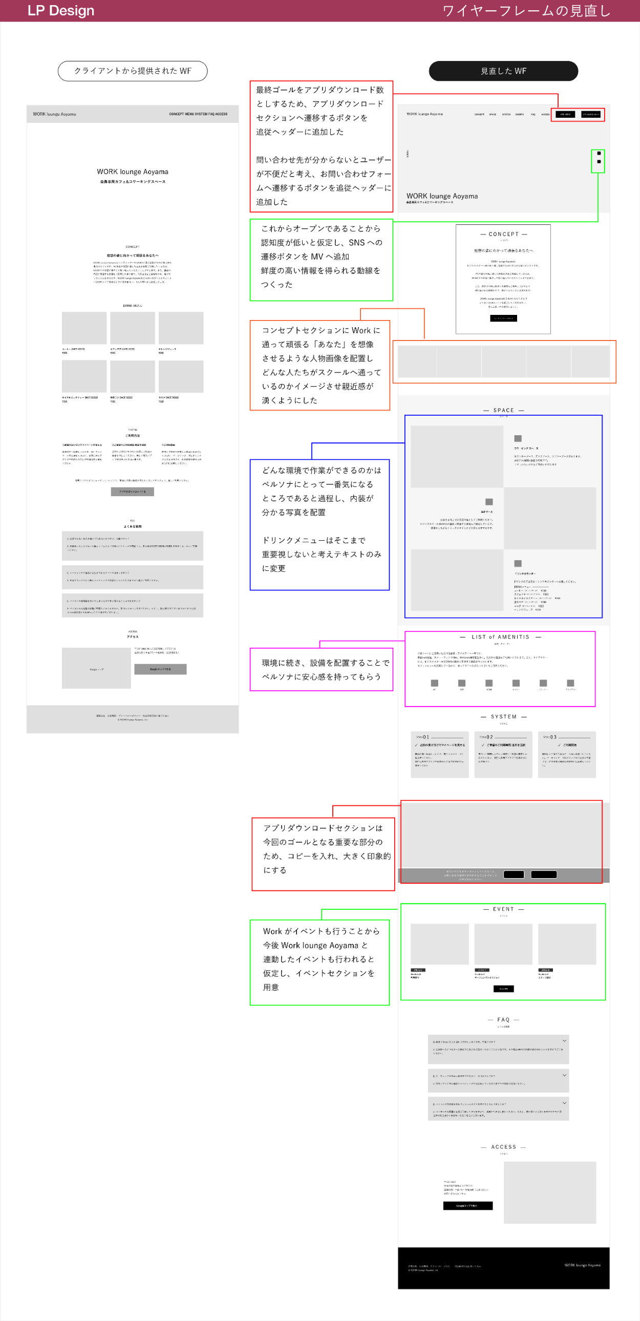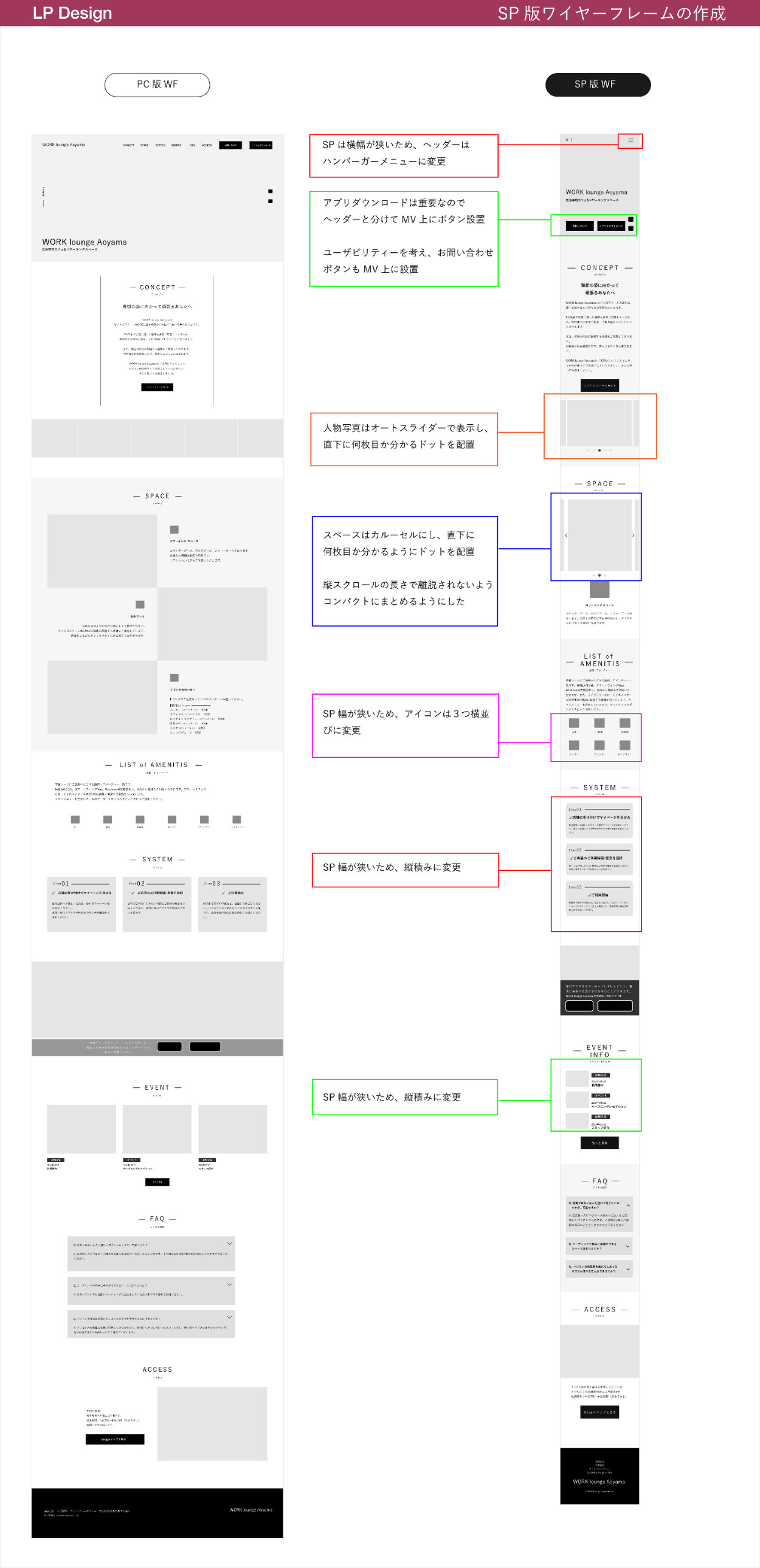 SHElikes MULTI CREATOR COURSE Designerの課題として、LP制作に取り組みました。クライアントからの依頼を想定しており、WFの再設計〜デザインカンプ制作までを行いました。 制作時間:WF再設計 4時間 デザインカンプ制作 22時間
