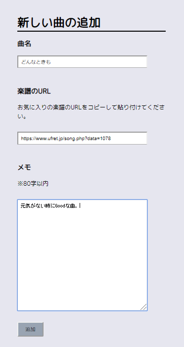 <楽曲の追加画面>
