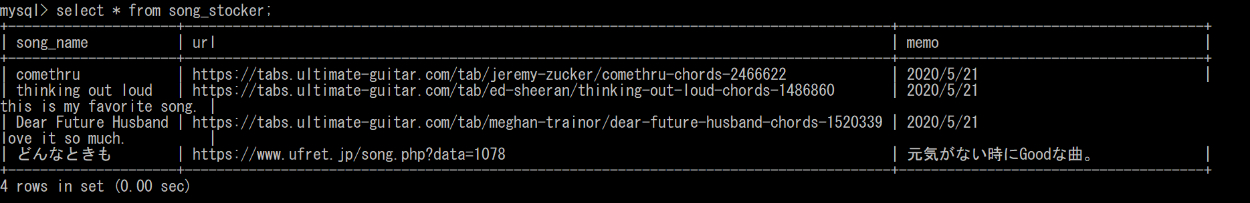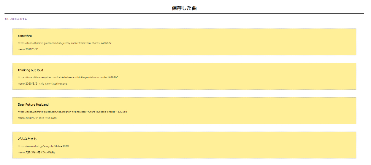 URLと曲名をクリックすると、そのURLにとびます。