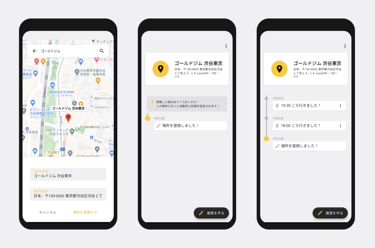 登録した場所へ行った日付を位置情報と連動して自動で記録するアプリです。