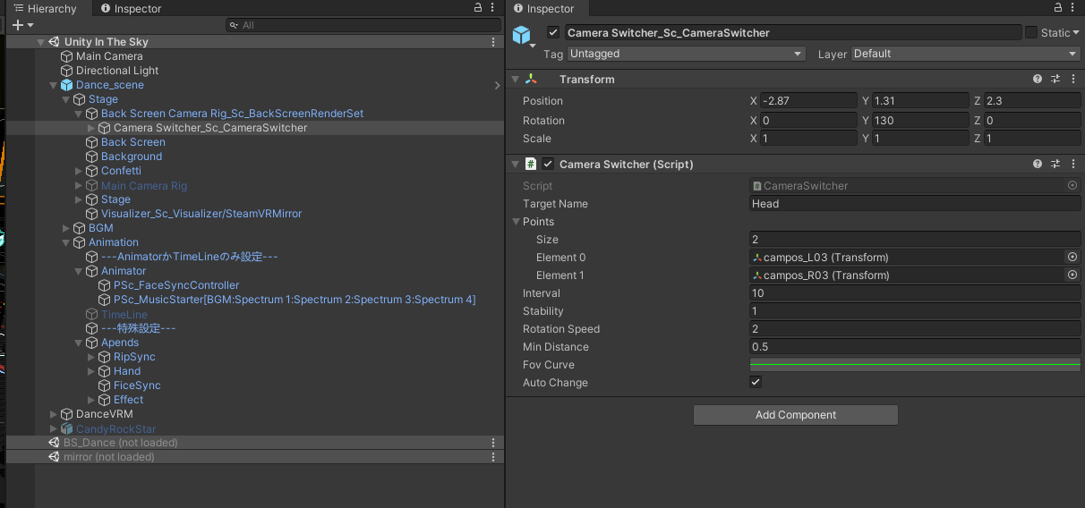 VRMの動作確認によく使われるツールとしてVRMLiveViewがあるのですが、ここで使用している「UNITE IN THE SKY」はユニティちゃんプロジェクトで使われている有名なダンスプロジェクトを流用していました。