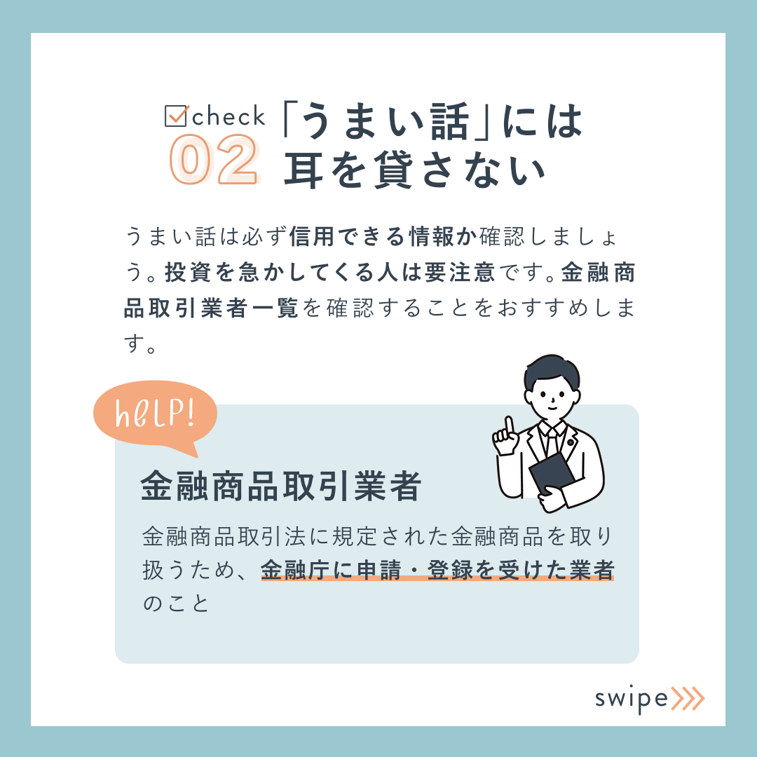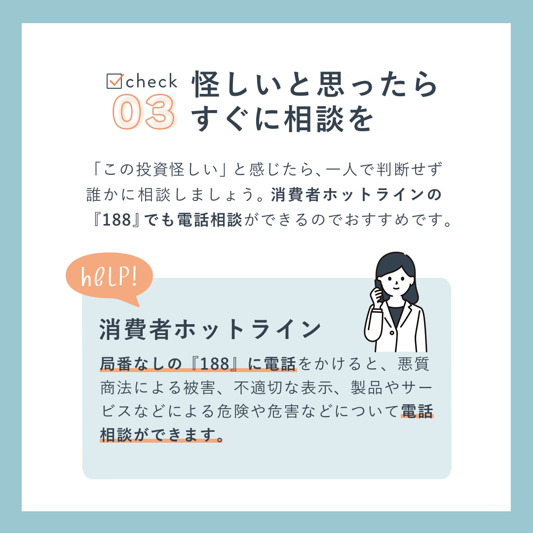 今回は『投資詐欺に遭わないために注意すること3選』をテーマに内容を考え、制作しました。