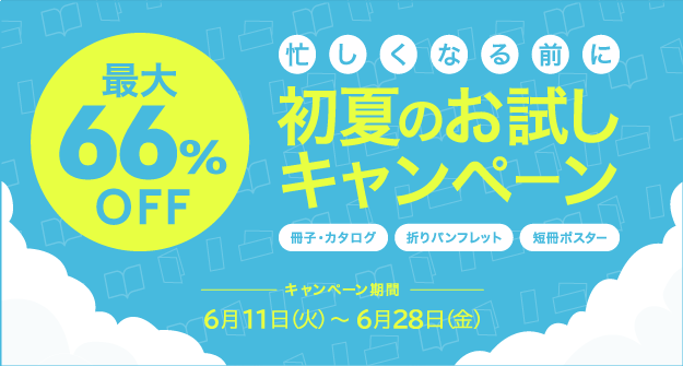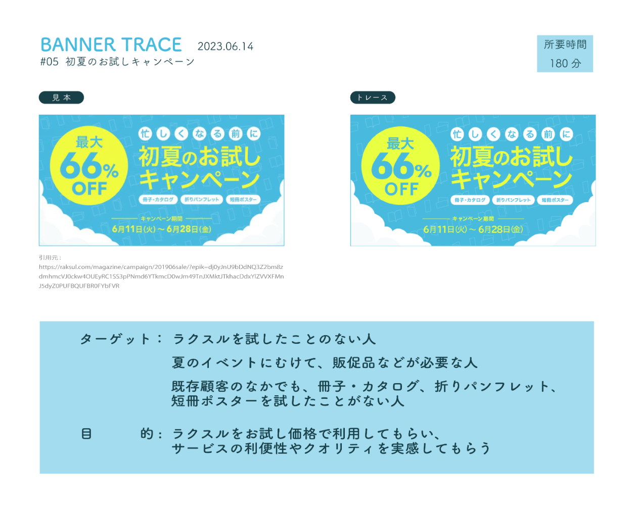 ラクスルさまの「初夏のお試しキャンペーン」バナーをトレースしました。