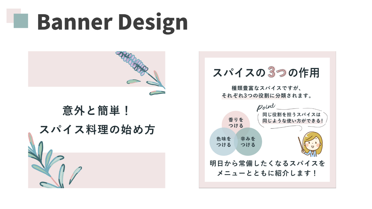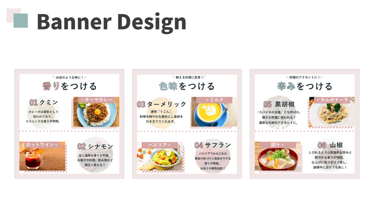 ●入れたい要素:スパイスを使った料理に興味を持っていてもまだ使ったことのないユーザーに対して、使いたくなるような内容