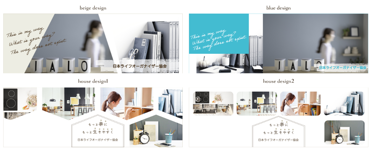 フォントで手書き風の文字にした理由は、①日本ライフオーガナイザー協会様は人に重きを置かれているため、人が書かれた文字をイメージしたことと、②日本ライフオーガナイザー協会卒業生の片づけのプロフェッショナルの方をイメージし、丁寧な生活を営まれている方と想像し、綺麗な手書き風文字を使用しました。