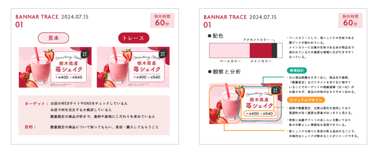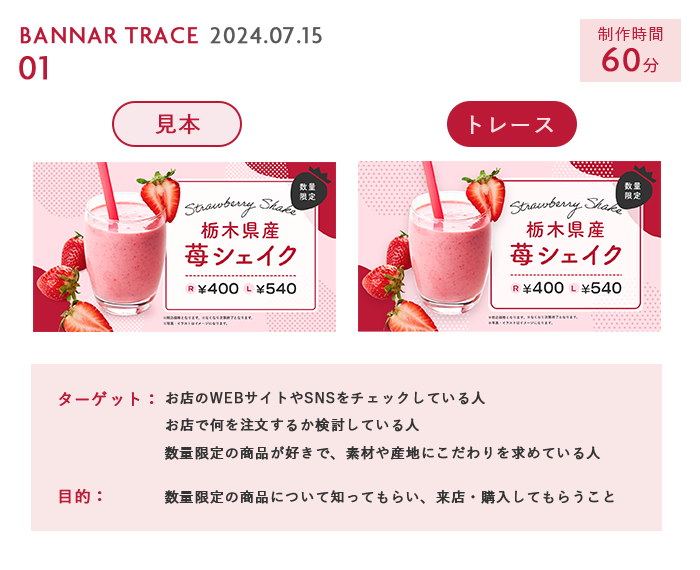・見本とトレースの比較、バナーのターゲットと目的