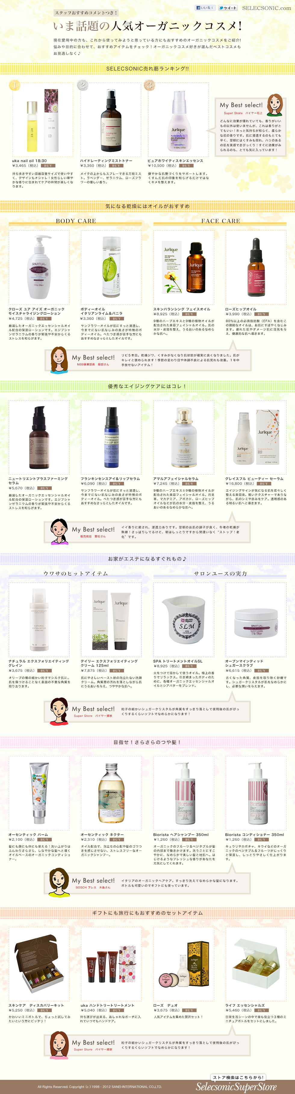 selecsonicで人気のオーガニックコスメの特集ページを制作しました。