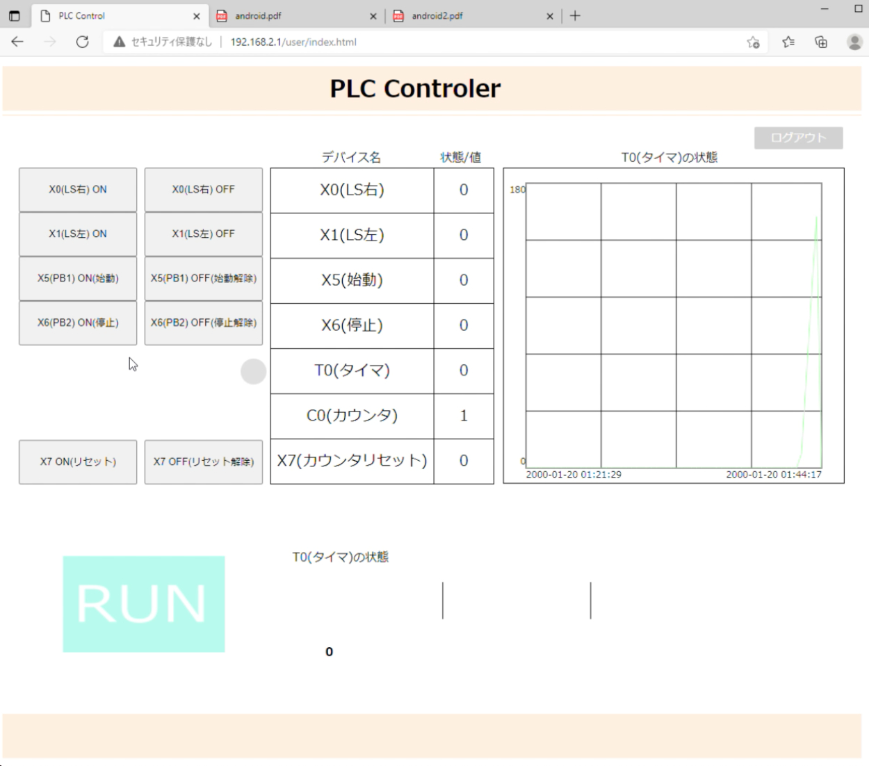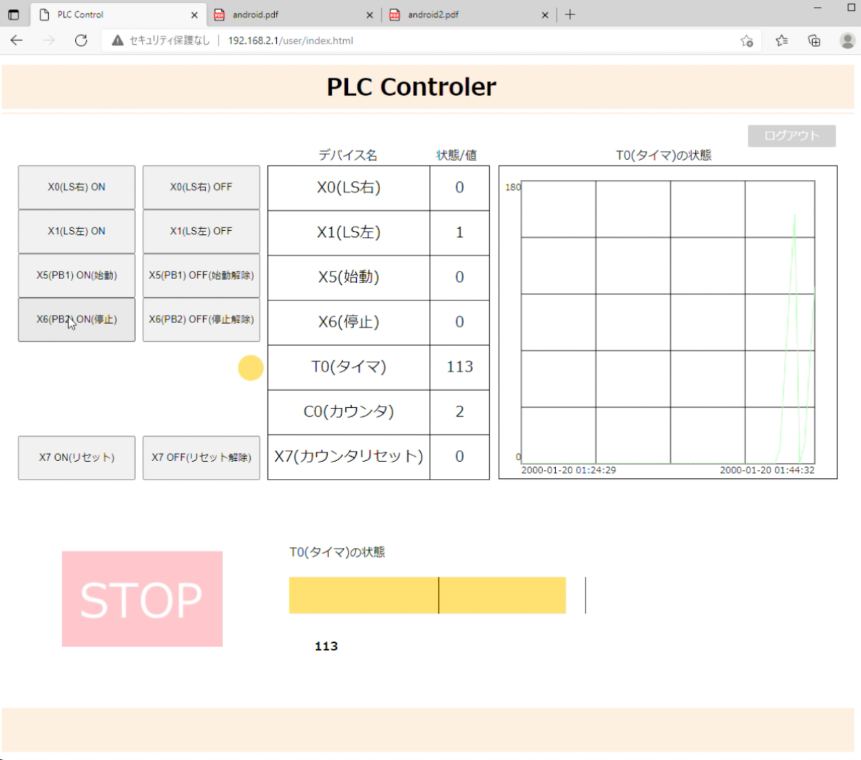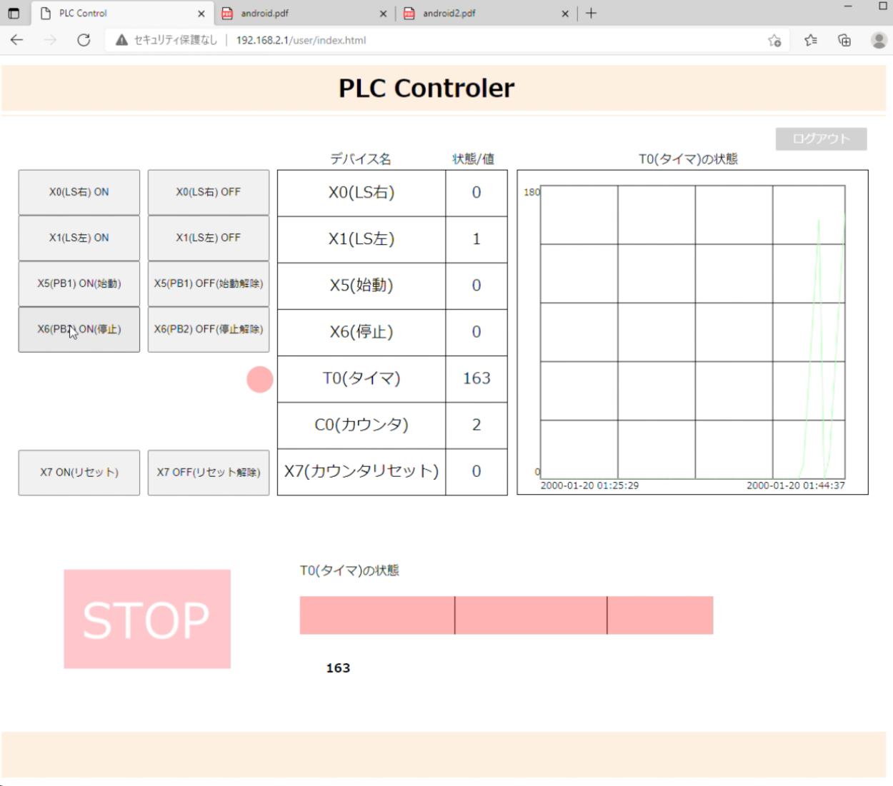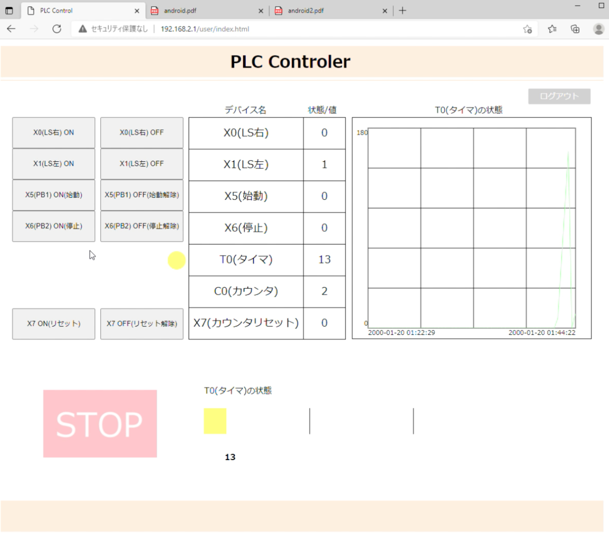 さらに実習機材の押しボタンスイッチ、リミットスイッチなどの制御とモニタリングができるwebページを作成しました。