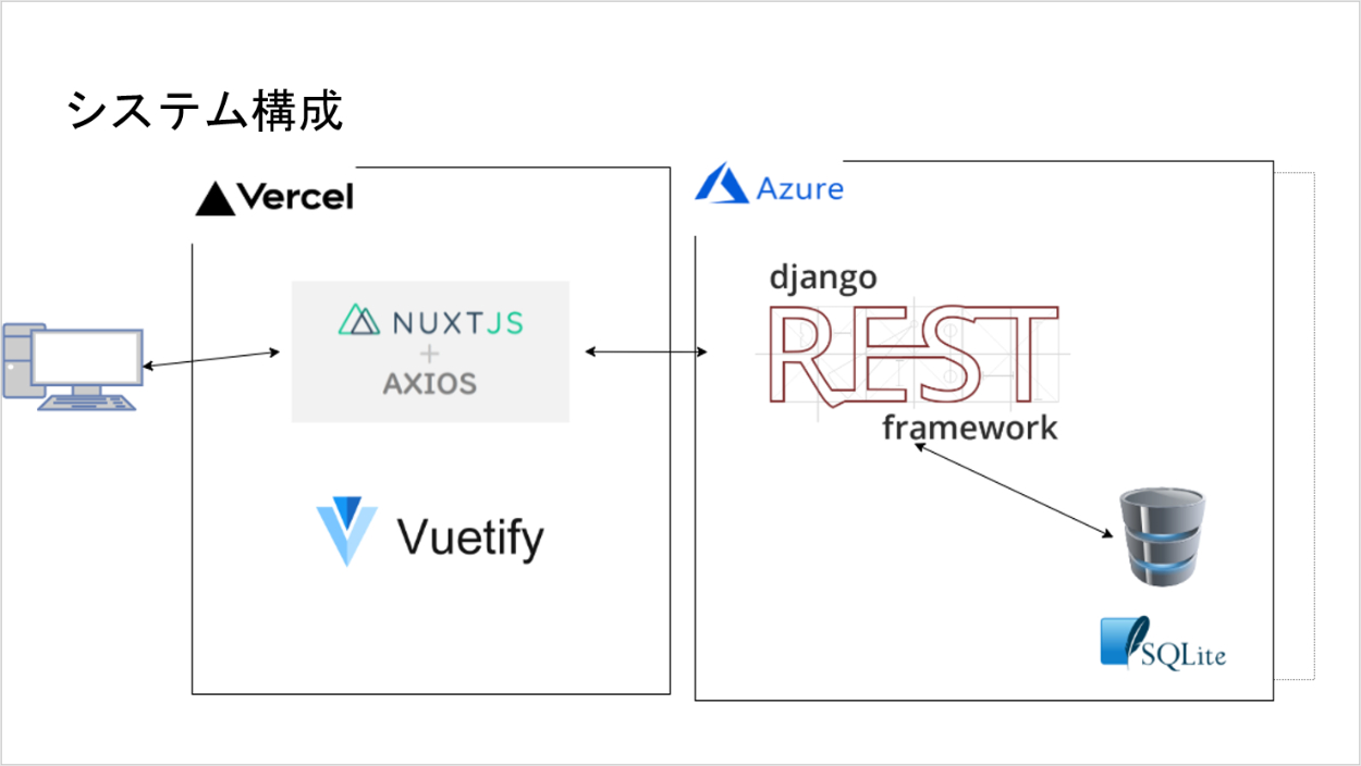 今回、自分が担当したのはバックエンドなので、フロントの技術が説明できない....
