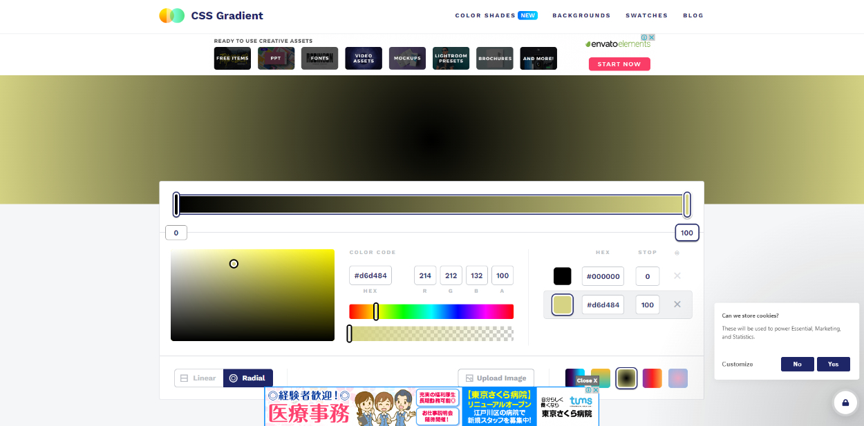 また後ろのグラデーションもより視覚的にわかりやすくするWEBサイト「gradient CSS」も登場だ。