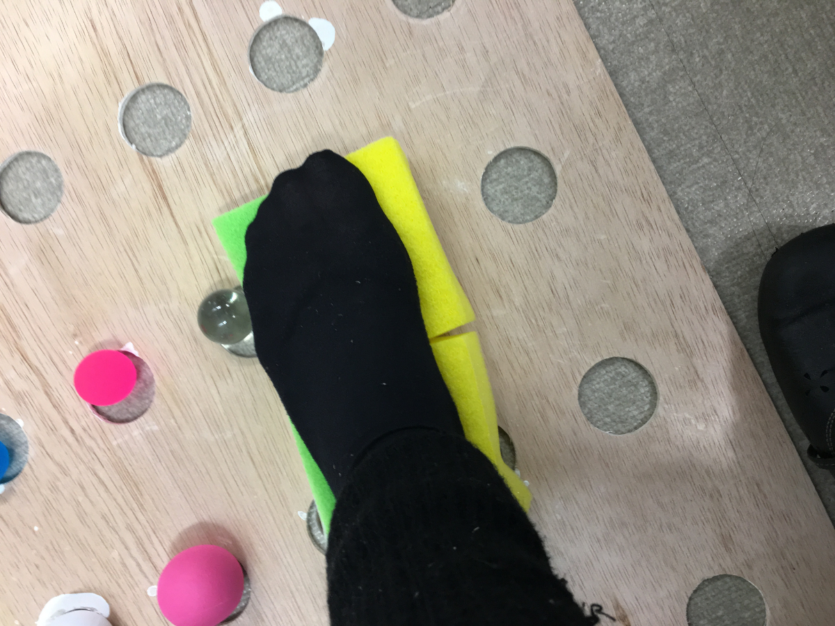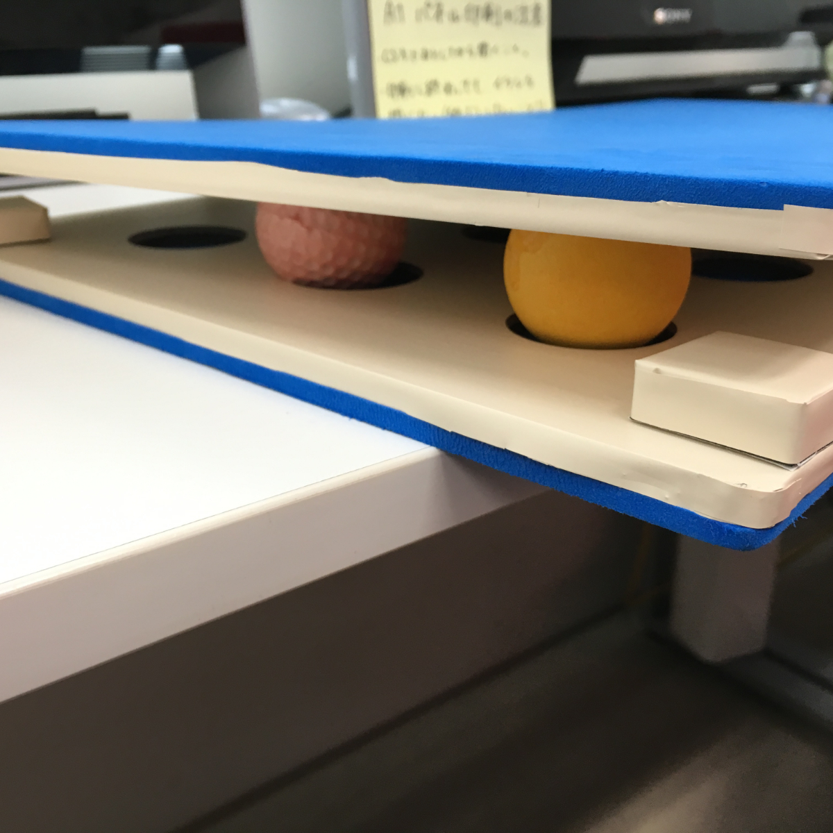 どうやって遊ぶ →板にボール挟んで乗ってぐらぐらさせる