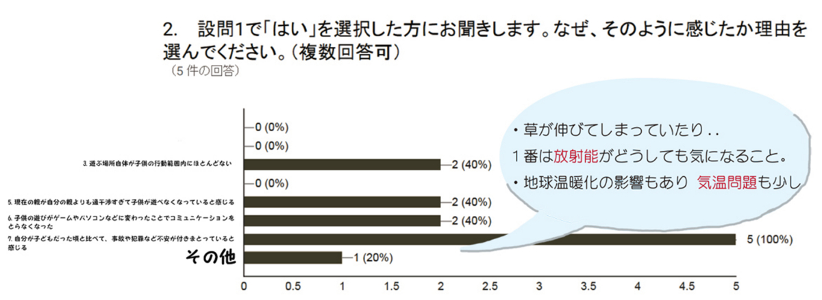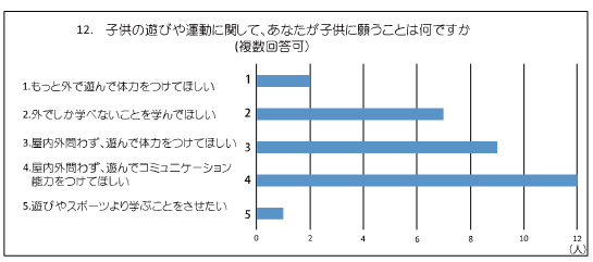 - 子どもの運動不足問題に関して認知はあるが、子どもには体力よりもコミュニケーション能力を養ってほしい