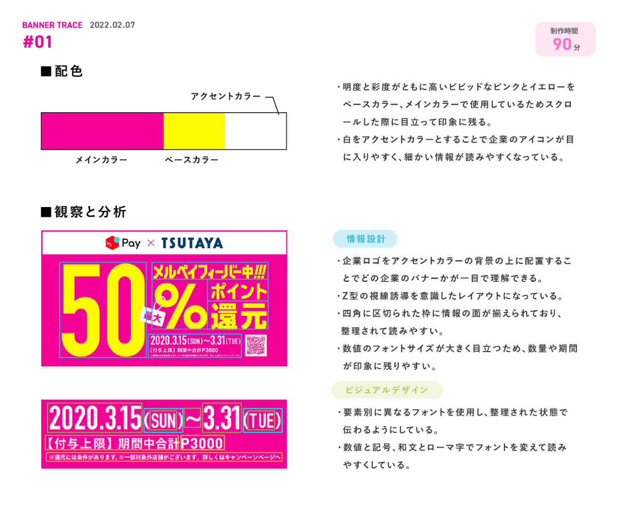 トレース対象のバナーの配色やレイアウトを分析し、まとめました。