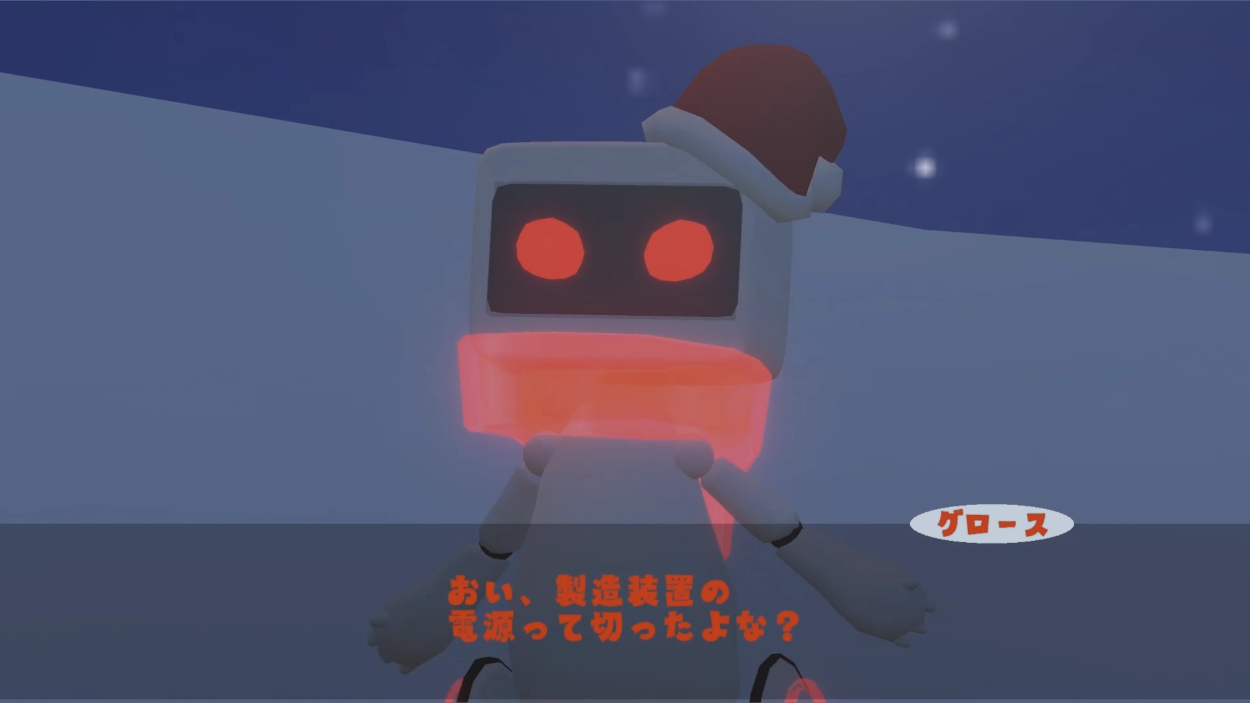 ゲームをスタートするとプロローグ映像が流れます。企画の一人とプログラマーの一人がUnityのCinemachineを使って制作した渾身のカットシーンとあらすじの映像です。制作の最後の最後まで調整に調整を重ねていました。