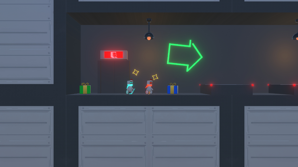 2人の「電気くん」を操作し、ステージのギミックを乗り越えてクリスマス中止を阻止する2人プレイ専用のパズルアクションゲーム