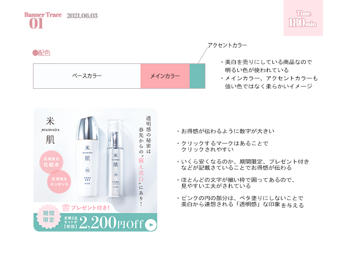 SHElikes MULTI CREATOR COUCEの課題で初めてバナートレースをしました。 バナーの分析やバナートレースを通して学んだことをまとめました。 制作時間:3時間