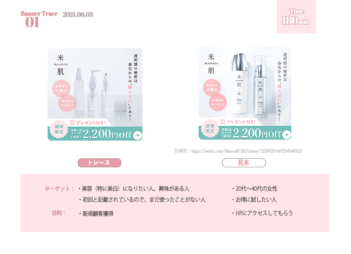 スキンケアブランド米肌さんのバナーをトレースしました。