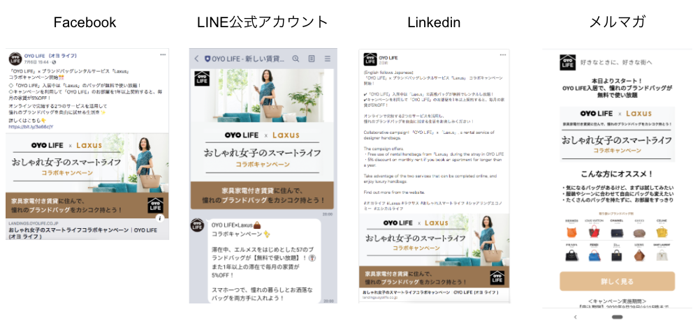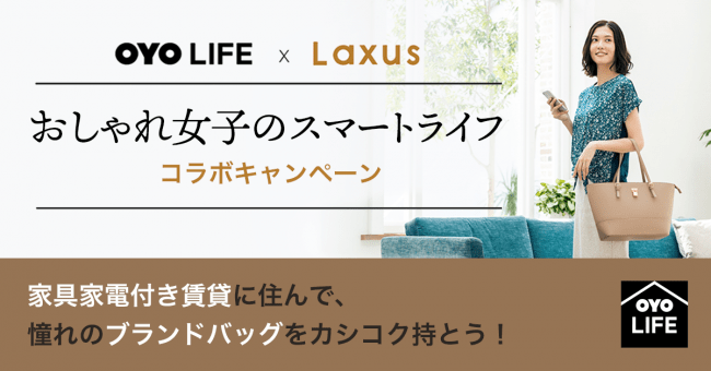 スマートに「住」と「ファッション」を楽しんでいただく本キャンペーンは、家具家電付き物件が豊富な「OYO LIFE」への入居中、全57ブランドの高級バッグが使い放題となる「ラクサス」のサービスが無料で利用でき、さらに1年以上の入居で毎月の家賃が5%OFFになるキャンペーンです。