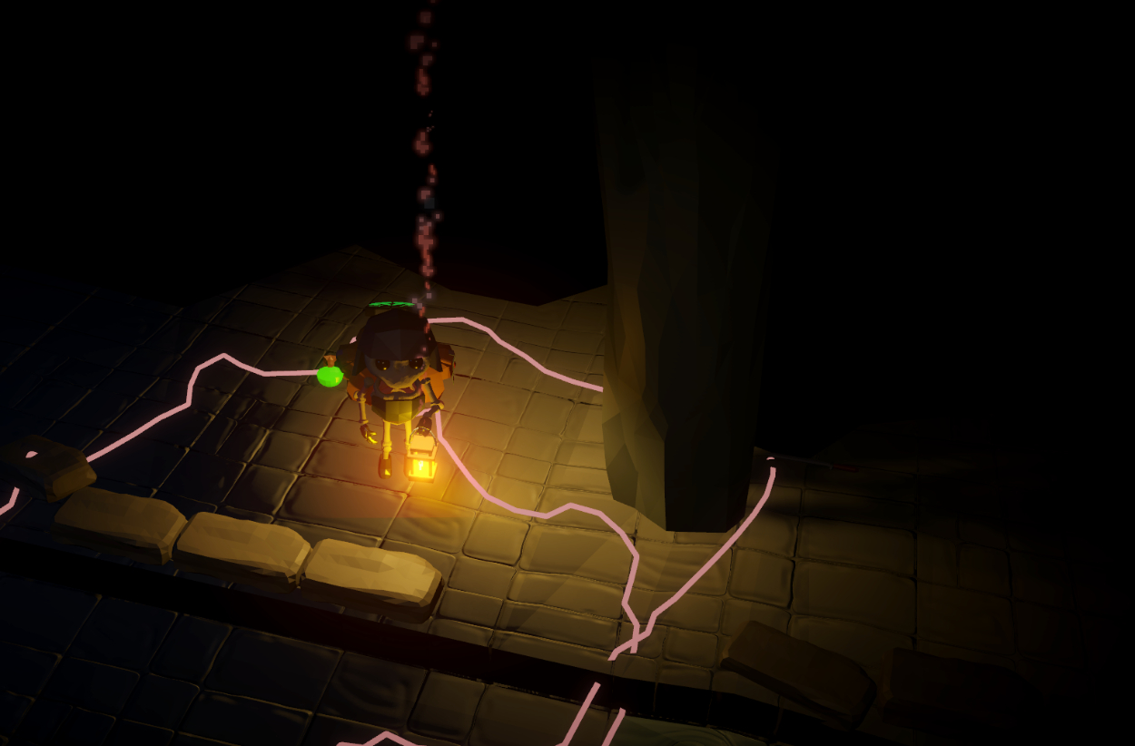 プレイヤーは完全に暗闇の中で方向を見つけなければなりませんが、ランタンとすでに訪れた場所を示すロープの使用によってそれが可能になります。