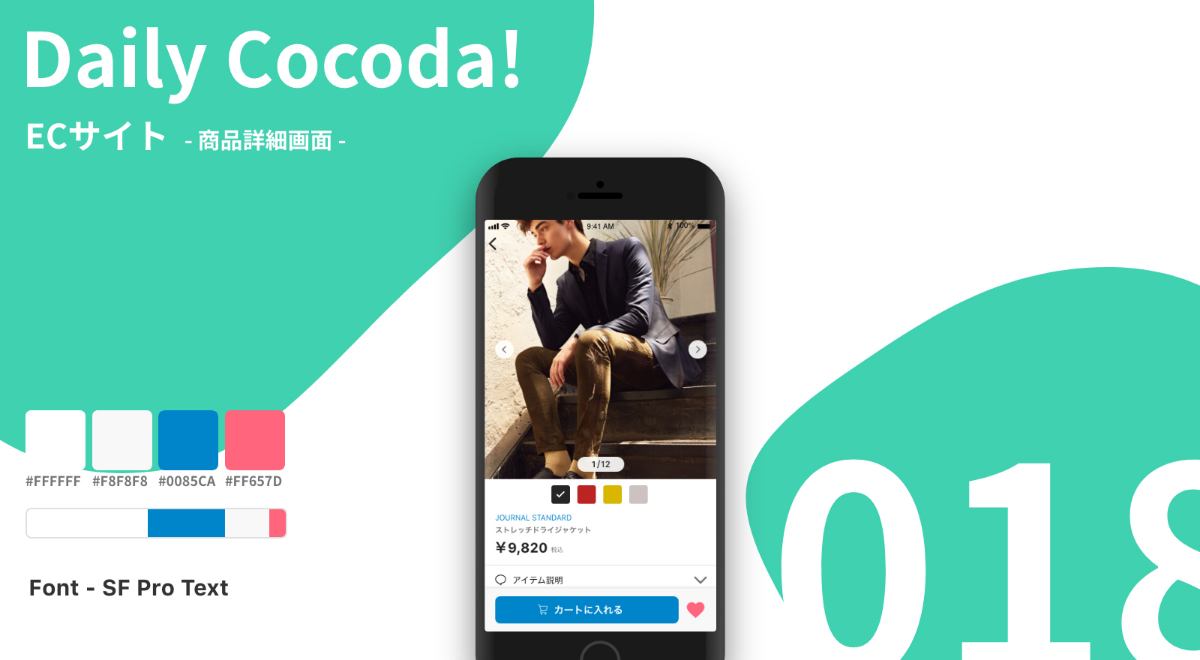 メインのビジュアルを大きく表示し、カラーの選択、お気に入り、カートへ入れるなど主要な部分の操作を容易に行えるようなUIを意識して作成しました。