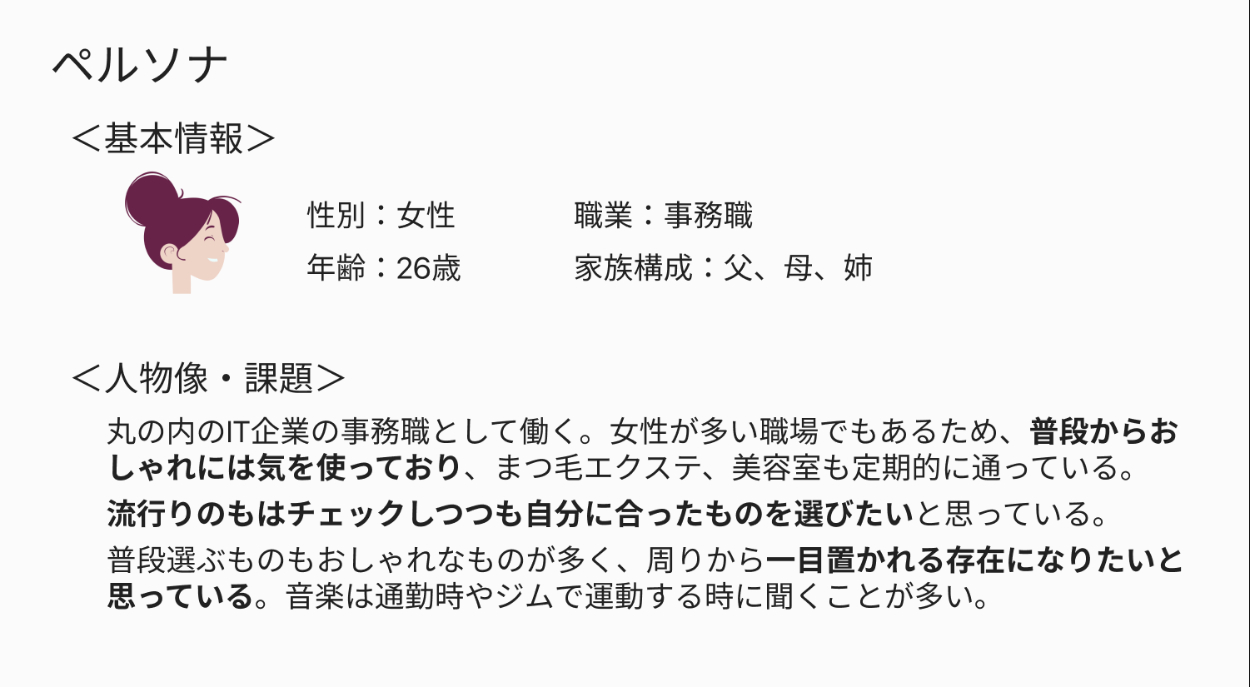 制作物:ペルソナ / ワイヤーフレーム / カラーパターン / UI画面