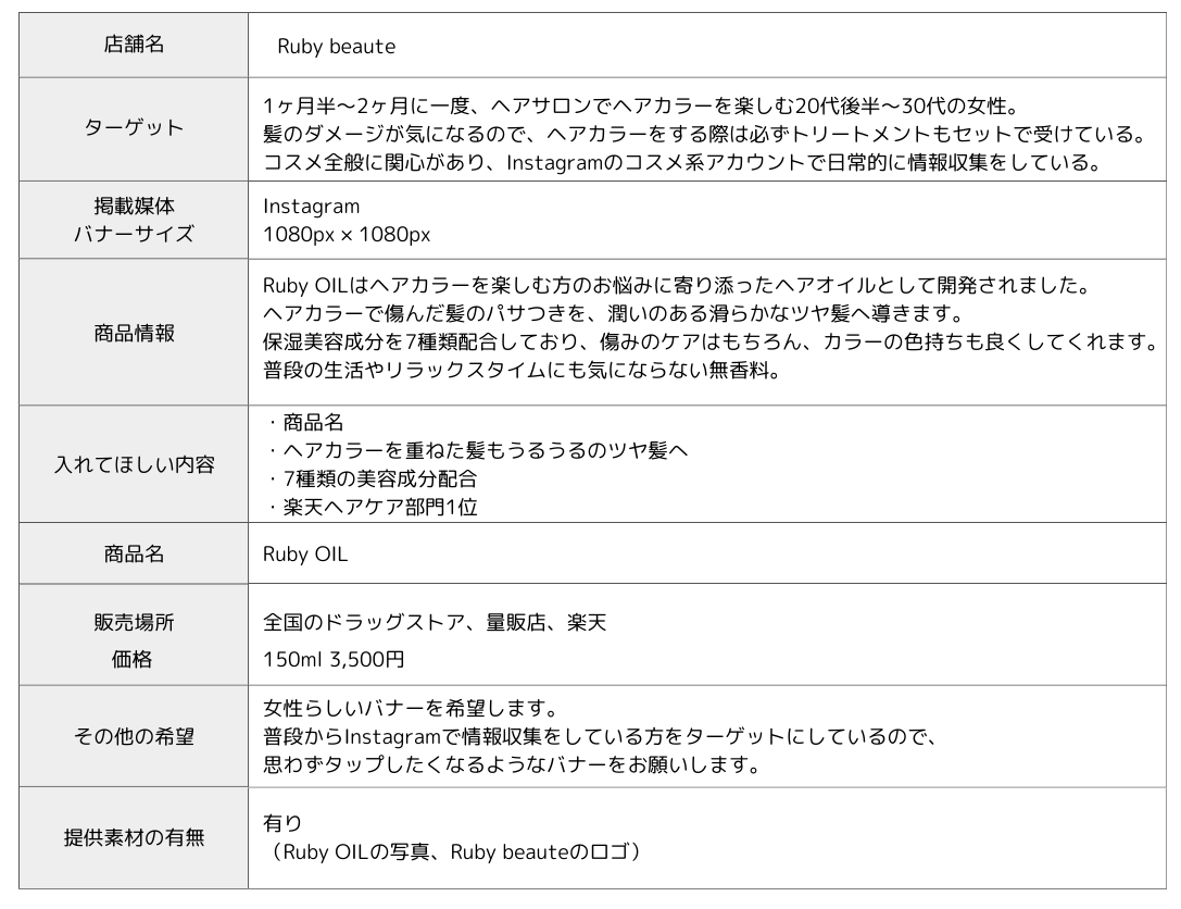 架空案件のヘアオイルのバナー制作を行いました。