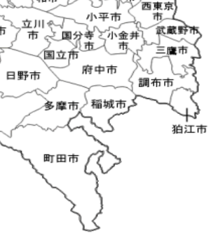 稲城市、国分寺市、国立市、多摩市、町田市、立川市、日野市