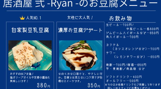 居酒屋 Ryan(広島)/A3店頭POP/店内メニュ-表デザイン制作