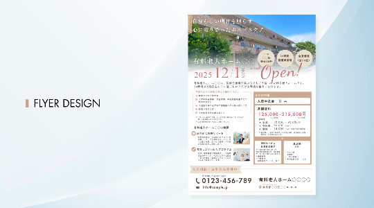 【自社案件】介護施設のオープン告知フライヤー制作 [Canva]