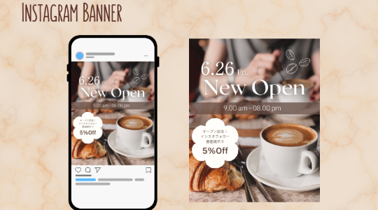 【架空案件】カフェオープンバナー インスタ投稿用