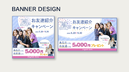 架空バナー制作(英会話教室の友達紹介キャンペーン)