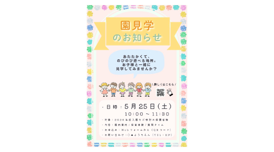 幼稚園見学会チラシデザイン|パステルカラーで安心感を♩