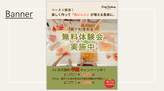 【HerTech模擬案件】親子料理教室 入会誘導バナー