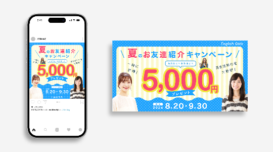 架空バナー制作(英会話教室の友達紹介キャンペーン)