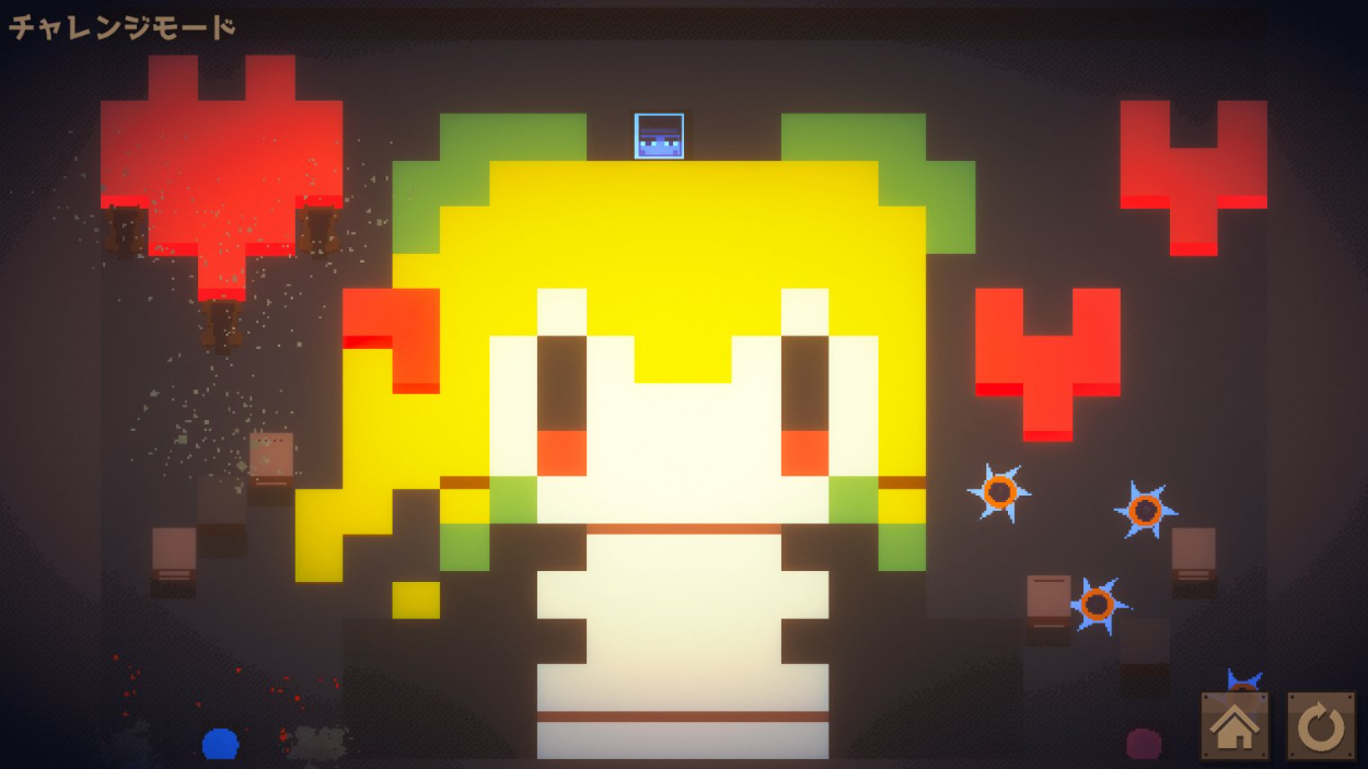 2匹のスライムを同時に操作するパズルアクションなゲーム性で、そこにステージ作成機能とデータストアを用いた共有機能が実装されています。