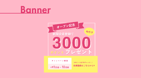 ・全体的にピンクを使い、女性らしさを感じさせる可愛らしいデザインを意識しました。