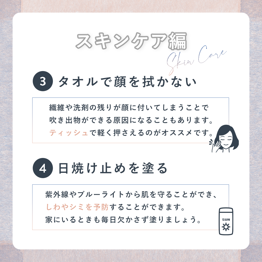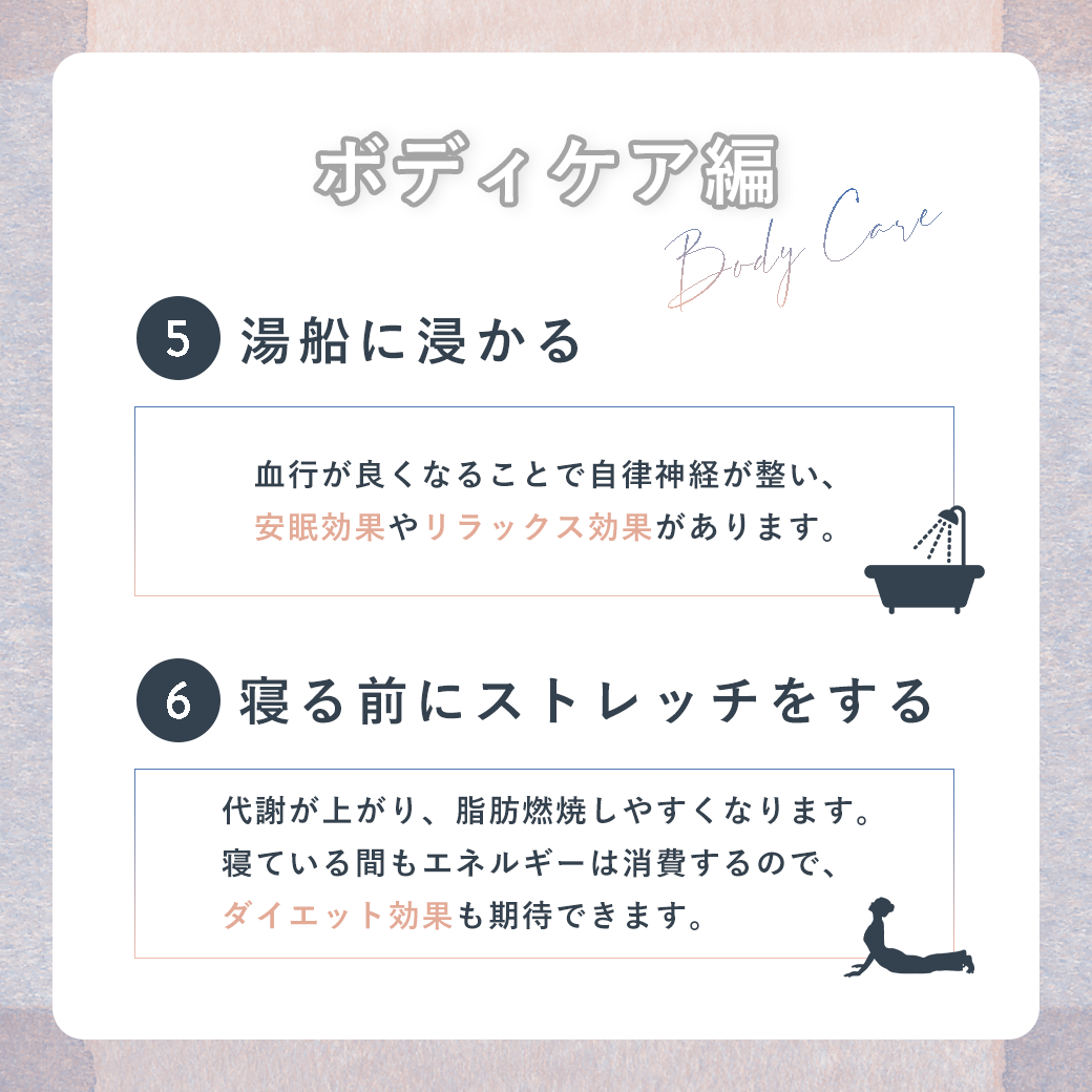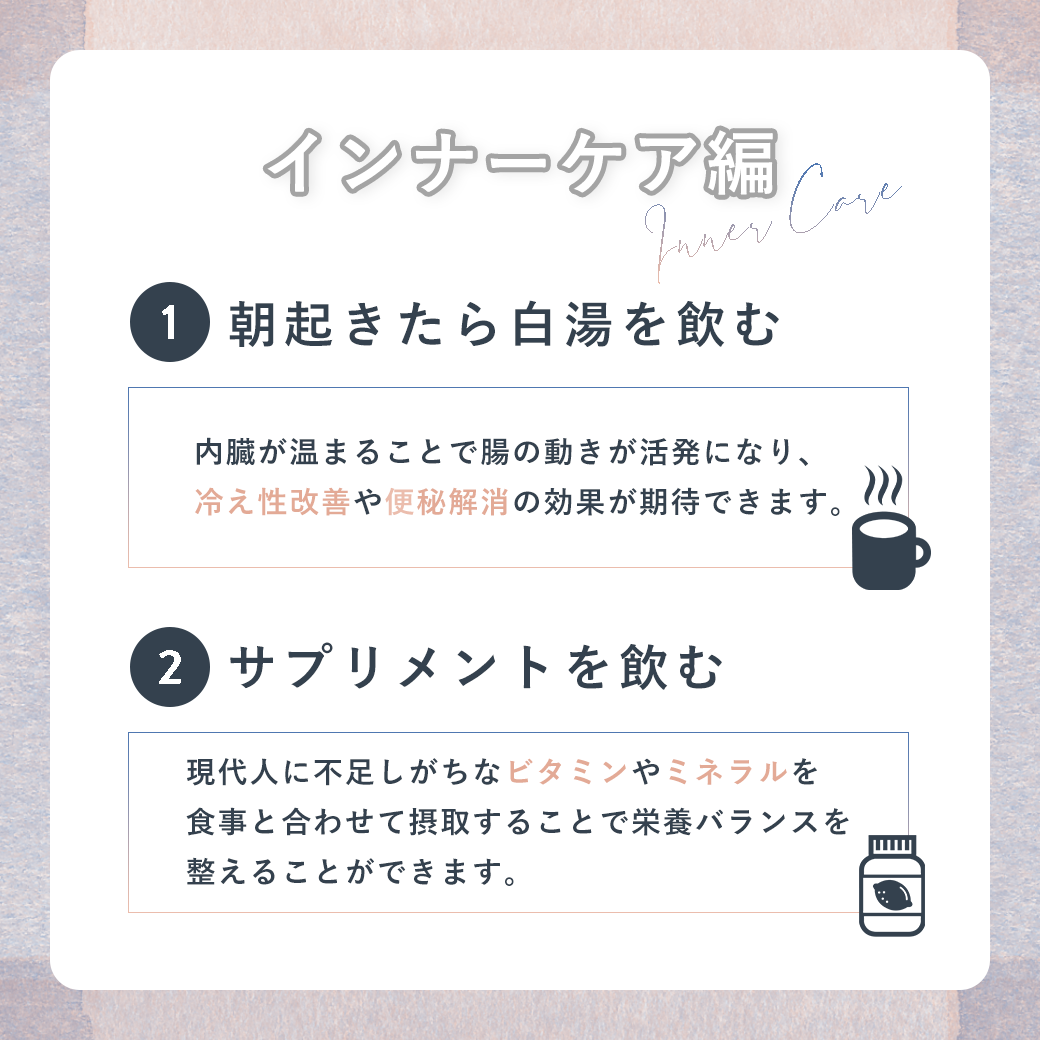 ※最低2つ以上、かつできるだけ多く紹介。必ず1つは美容法を記載。
