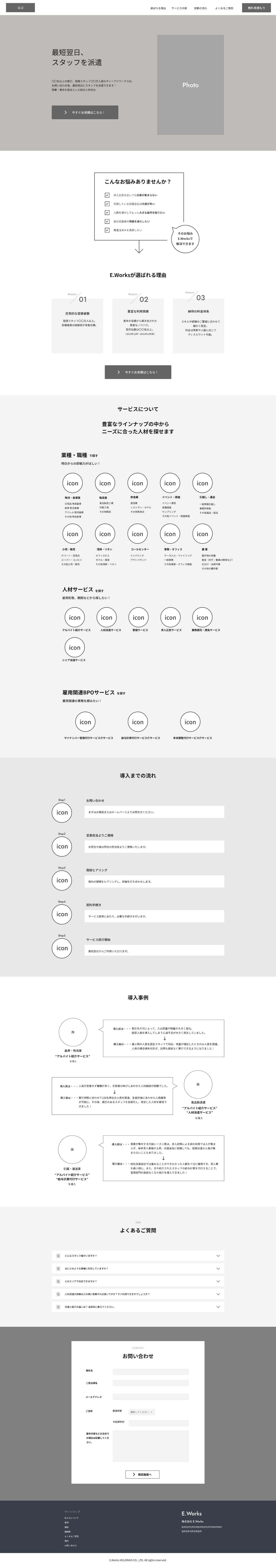 多岐にわたる業種に人材派遣している会社のLPです。 クライアントからの要件書を元に、情報設計・ペルソナ分析をし、ワイヤーフレームからデザインまでを行いました。