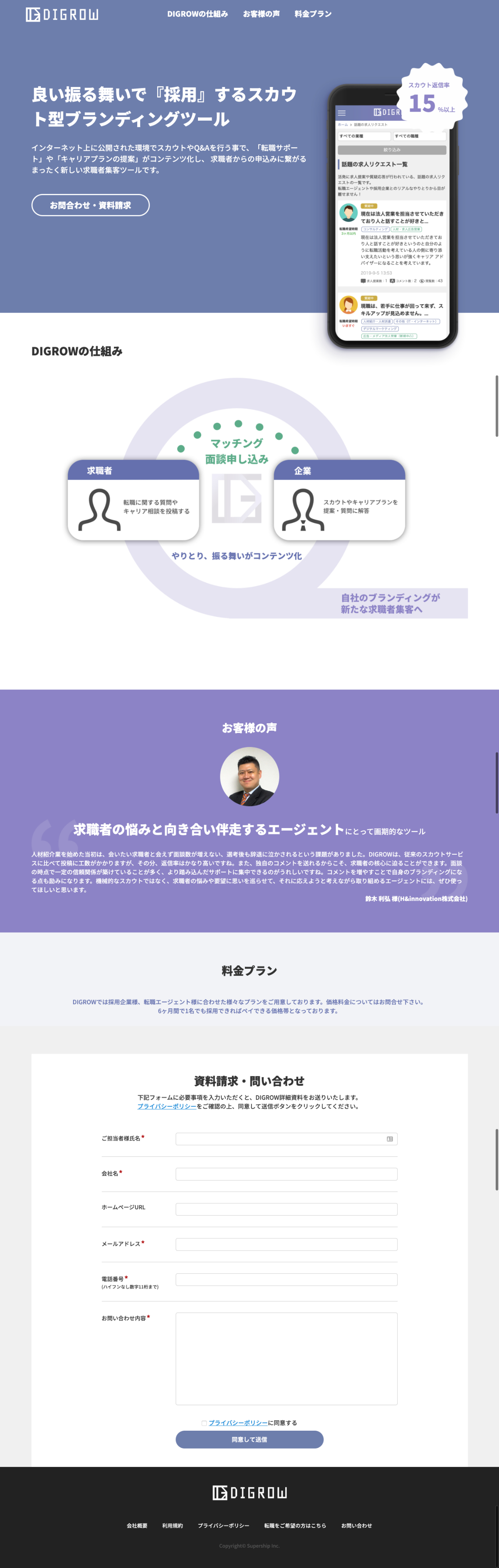 転職サービスのLP