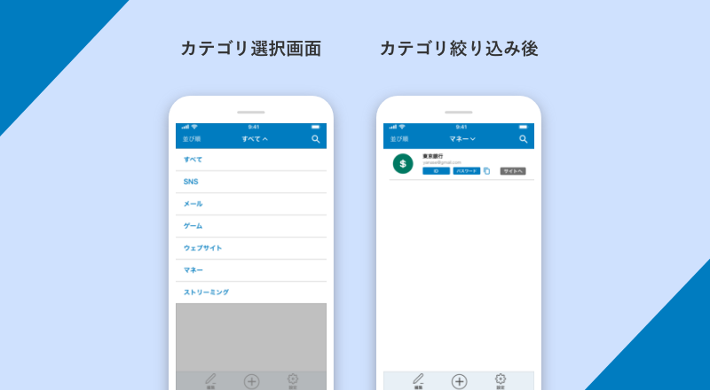 カテゴリ別表示機能: カテゴリ別に登録しているアカウントを表示