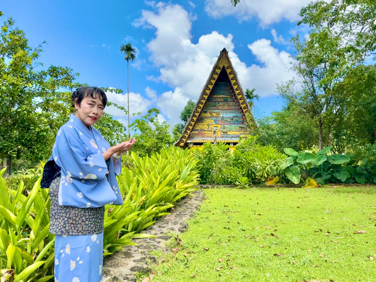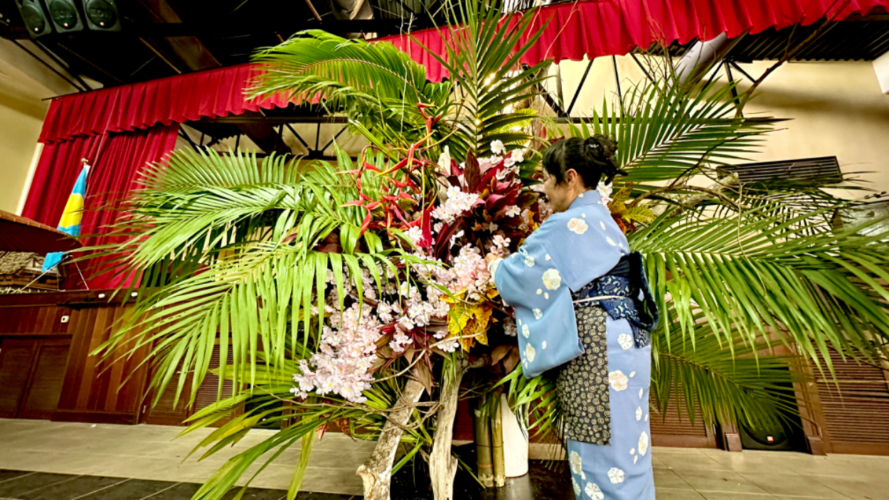 在パラオ日本大使館主催の日本フェアで生け花パフォーマンスをした華道家に密着取材