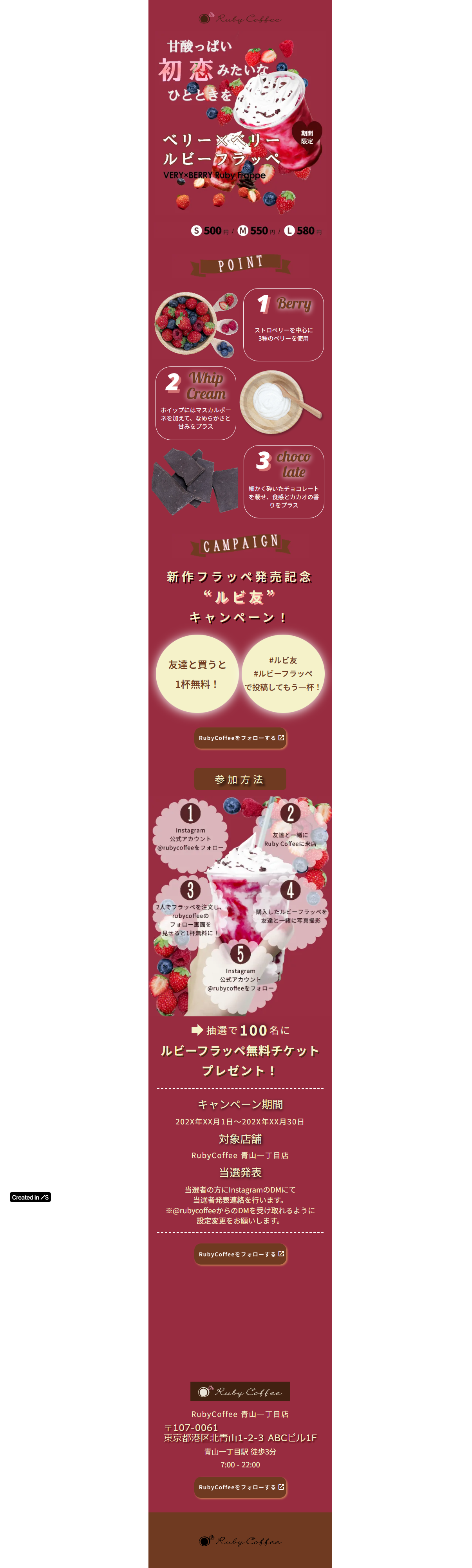 オンラインスクールHerTechの課題で、架空のカフェの新商品キャンペーンのLPをSTUDIOで作成しました。