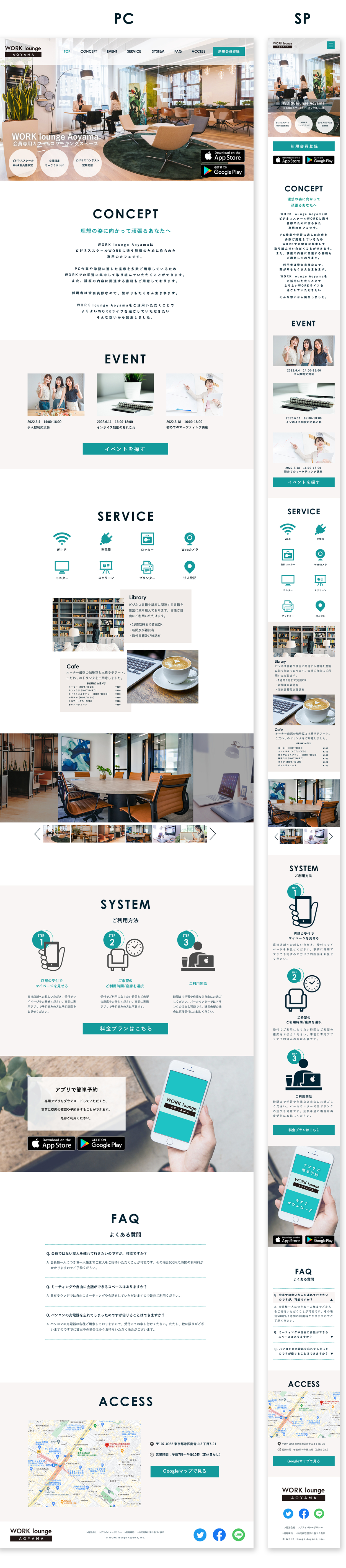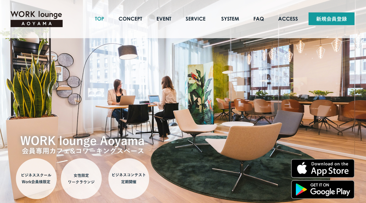女性向けビジネススクールを営むWORK様より、新しくオープンする会員専用カフェを告知するためのWebサイト制作の依頼です。