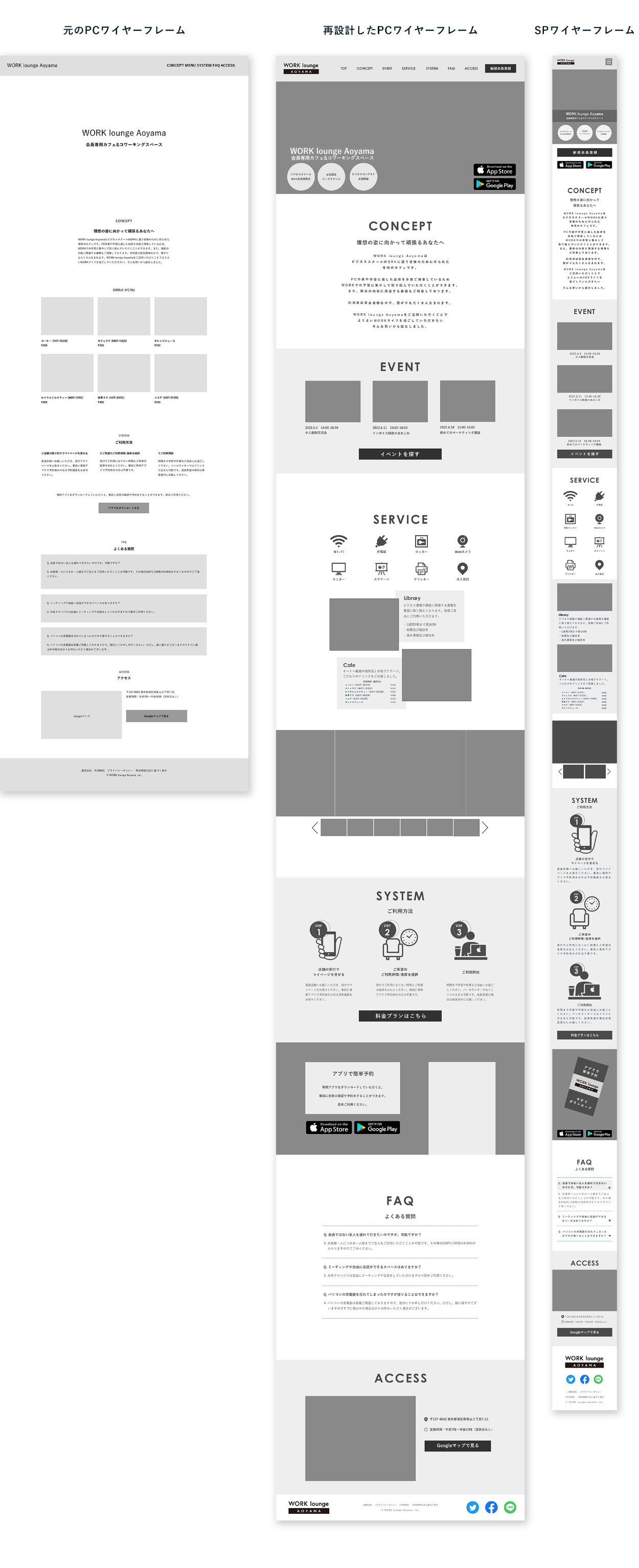 元のワイヤーフレームではドリンクの写真ばかりで「仲間との繋がり」や「コワーキングスペース」である印象が薄いと考え、「人」と「空間」をイメージしやすいデザインに変更しました。