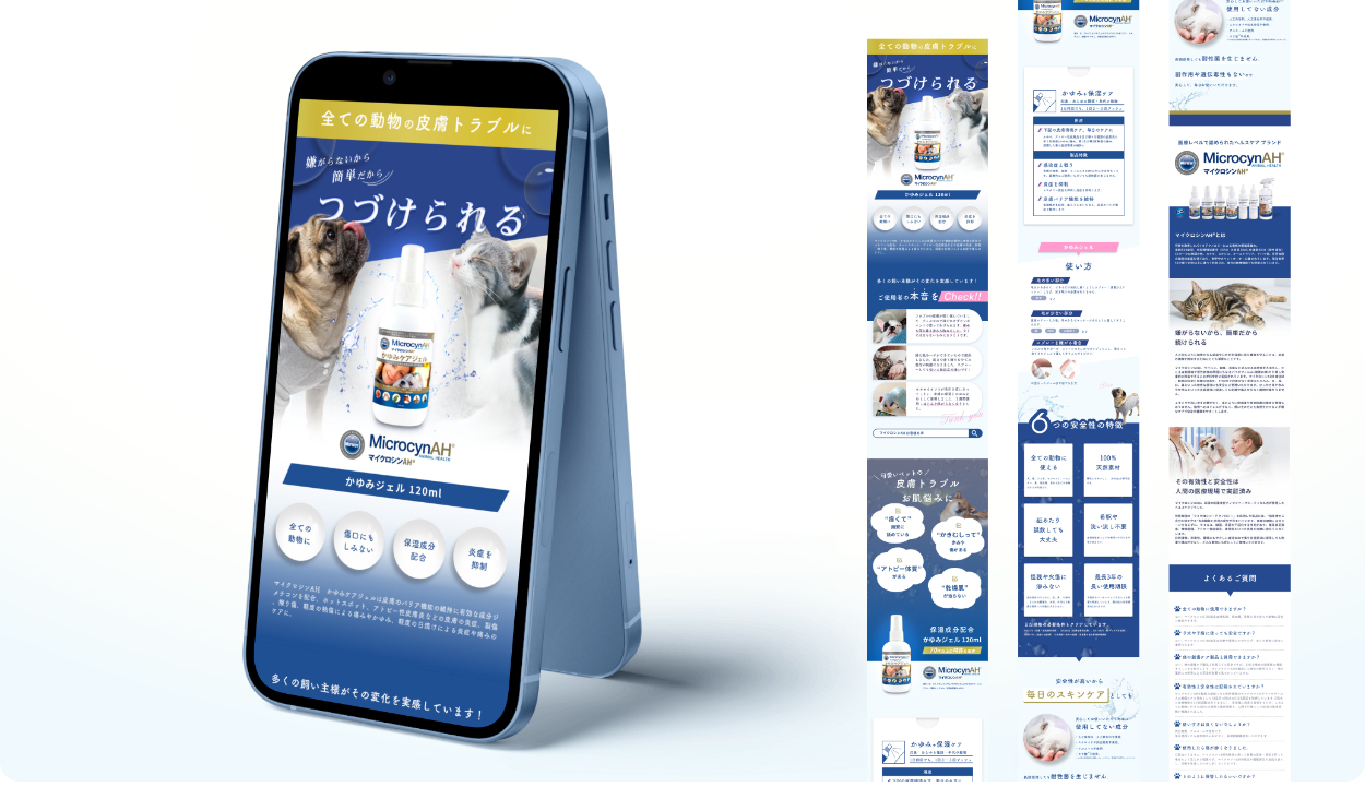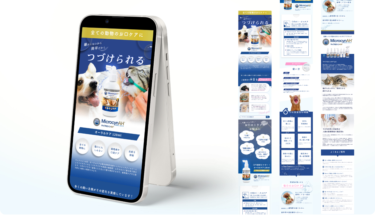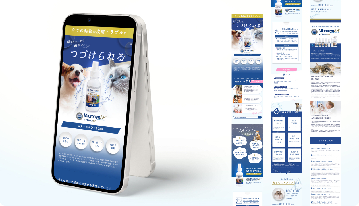 市場で新規販売する、海外で人気のペット用ケア商品(マイクロシンAH)のLP制作。