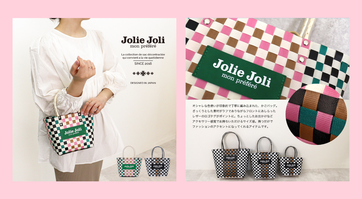 【オリジナルブランド】Jolie Joli Nana Kusudo Webデザイナー/ECサイト運営 志望 OVERVIEW パリジェンヌのファッションや日常生活、価値観などからインスピレーションを受け、誕生したブランドです。 持った時の大きさや、イメージが伝わりやすいよう心がけて撮影しています。 WEBSITE