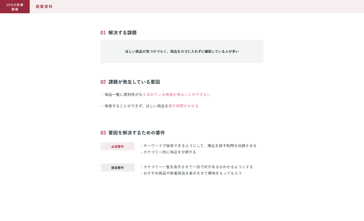 課題2:ほしい商品が見つけづらく、商品をカゴに入れずに離脱している人が多い