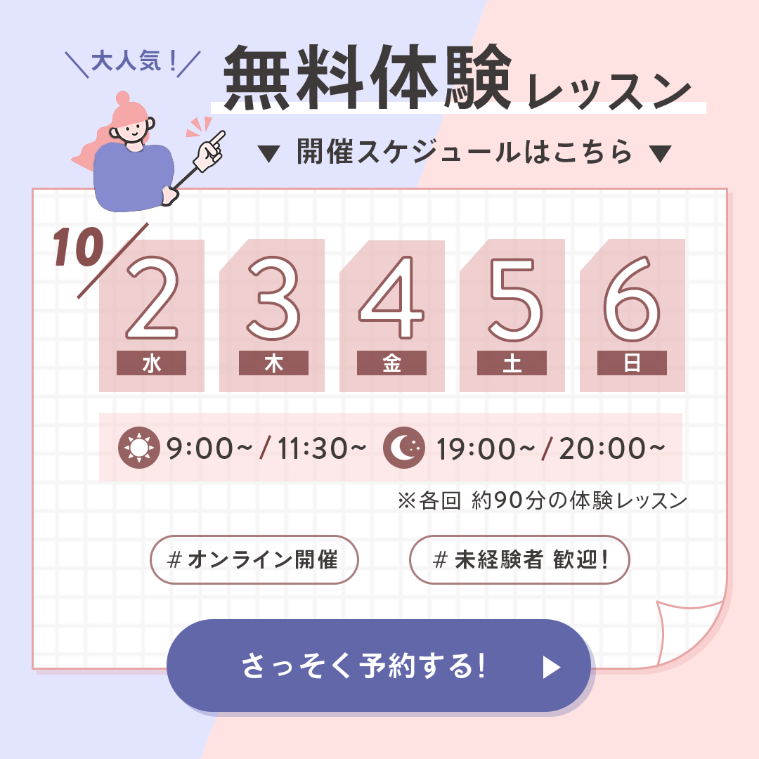 ・文字のジャンプ率を意識し、最も見てほしい数字を大きくしたり、「無料体験レッスン」の文字を強調しています。