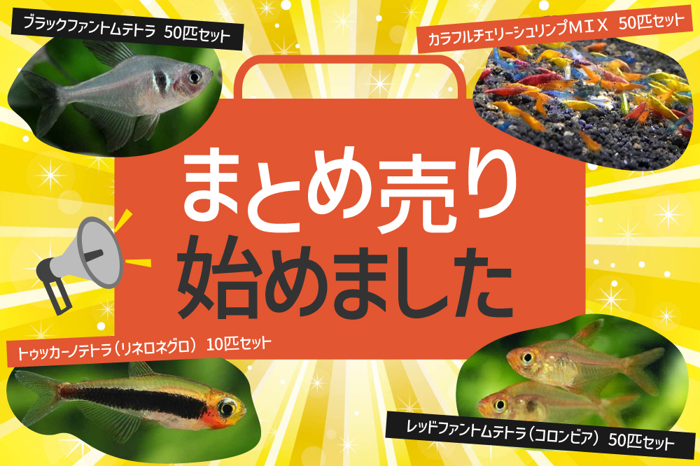 ③個体のまとめ売りのバナー制作でしたので、まとめ売りということが伝わるよう、買い物バッグを配置し、文言を大きめに配置。 また、個体を置いて何匹から購入できるのかわかるよう、あえて個数も記載しております。