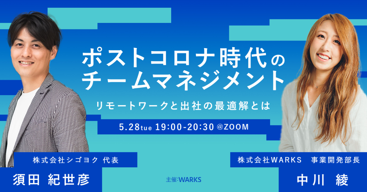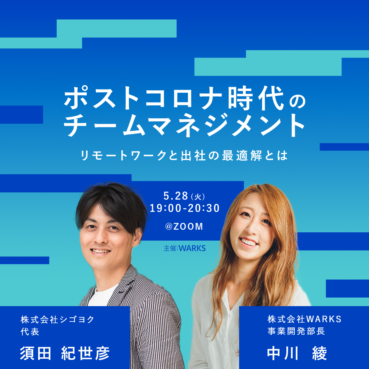 ・企業に対して新時代のワークスタイルコンサルチングを行う株式会社WARKSが、パートナー企業である株式会社シゴヨクと共同開催するオンラインセミナーの告知と集客。